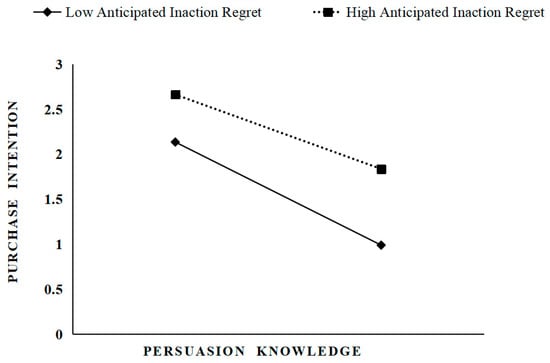 Anticipated inaction regret can negatively moderate the relationship between persuasion knowledge and purchase intention, meaning that the higher the level of anticipated inaction regret, the less significant the negative effect of persuasion knowledge on purchase intention.