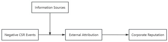 - This study reveals the internal mechanism underlying the effect of information sources on corporate reputation in the context of negative CSR events. The empirical results suggest that external attribution in consumer responsibility attribution mediates the effect of information sources on corporate reputation in negative CSR scenarios. Specifically, the differential impact of different information sources on corporate reputation on social media is achieved through consumers’ subjective belief that an enterprise’s negative CSR outcomes are caused by uncontrollable external factors.