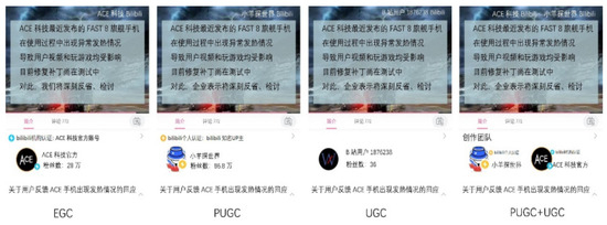 Referring to the research of Tian et al. [28], this study combines PUGC and EGC, considering them together as a single information source (PUGC + EGC). This source of information is referred to as co-generated content, which is the content generated as a result of the cooperation between the official account of an enterprise and professional users in a certain field.