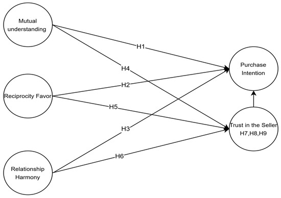 As an aspect of swift guanxi, mutual understanding reduces the perceived disadvantages associated with the transaction environment. The reduction in perceived disadvantages can enhance the consumer’s trust in the seller. Viewed from the perspective of SET [18,19], when consumers feel that sellers understand and align with their needs, this fosters a sense of reliability and predictability, thereby enhancing trust. The established trust then mediates the relationship between mutual understanding and purchase intention, since consumers are more likely to make a purchase when they have more trust online [47]. Therefore, it is hypothesized that: