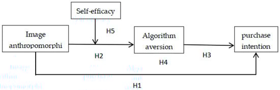 According to research on human–computer interaction, individuals have different self-efficacious responses to the degree of image anthropomorphism in AI. Self-efficacy is known to influence decision-making behavior []. A high self-efficacy can stimulate positive behaviors among individuals, while a low self-efficacy tends to lead to negative behaviors []. Self-efficacy reflects an individual’s belief that they can manage the demands of a challenging environment by taking adaptive measures []. Individuals with low self-efficacy doubt their ability to cope with risks and withstand threats.