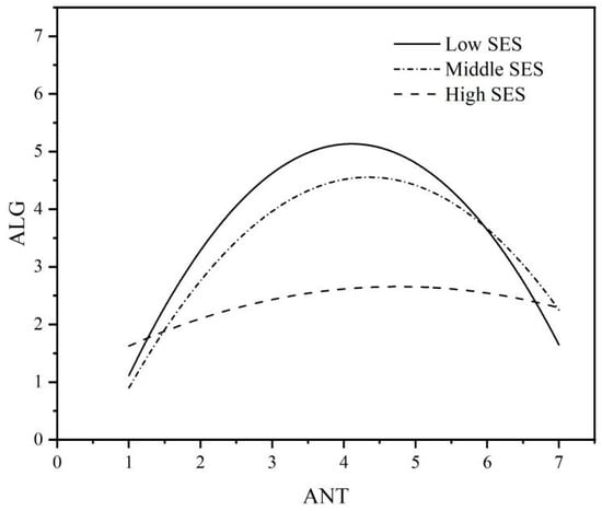 We used stratified regression for hypothesis testing. We added the term representing the anthropomorphized image of the virtual influencer to the regression equation after centering the primary term. As shown in Table 9, Model 5 was first used to test the effects of the individual characteristics of the variables on consumers’ purchase intention. Based on this, the primary term for image anthropomorphization was added to Model 6, and the results of regression showed that it had an insignificant effect on consumers’ purchase intention (β = −0.075, p > 0.05). Model 7 included the quadratic term for image anthropomorphization. The results of regression showed that the primary term for image anthropomorphization was still insignificant (β = 0.04, p > 0.05). By contrast, the quadratic term for image anthropomorphization had a significant positive effect on consumers’ purchase intention (β = 0.257, p < 0.01), with a value of ΔR2 of 0.227, and was significant at the 0.01 level. Therefore, Hypothesis 1 was accepted as valid; that is, there is a positive U-shaped relationship between the degree of anthropomorphization of the image of the virtual influencer and consumers’ purchase intention. In addition, Model 8 contained the variable for algorithmic aversion based on Model 5. The results of regression showed that algorithmic aversion had a significant negative effect on consumers’ purchase intention (β = −0.72, p < 0.001), with an ΔR2 of 0.425, and was significant at the 0.001 level. Therefore, Hypothesis 3 was valid; that is, algorithmic aversion has a significant negative effect on consumers’ purchase intention.