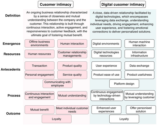 However, the field remains under-researched, resulting in the lack of a universally accepted term for customer intimacy in the digital era. To bridge this gap, the term “digital customer intimacy” is proposed for further exploration. “Digital”, as defined by Merriam-Webster [86], refers to the utilization of devices constructed or operating based on electronic principles. Distinct from “cyber”, “online”, or “virtual”, “digital” encompasses broader aspects of commercial services, including but not limited to online banking, e-learning, online shopping, and virtual agent services [87].