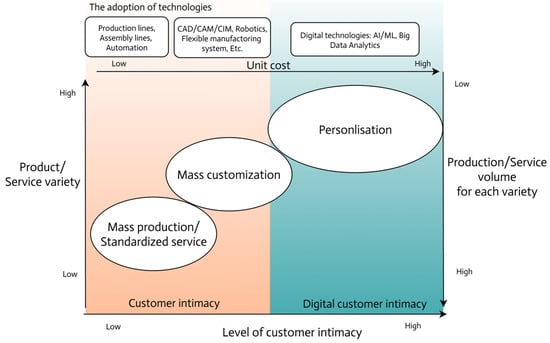 Customers also develop intimacy with products or services [38], relying on them for various tasks and valuing tailored solutions that meet their specific needs [57]. Additionally, at a micro scale, customers establish intimate connections with the technology integrated into products or services [58,59], aligning with their preferences and fostering trust in data sharing [60].