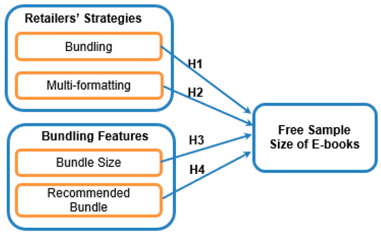 Third, this paper examines the role of two features of bundle design: the size of the bundling-by-yourself option and recommendation bundling. Prior studies of bundle features often focused on how they affect consumers’ valuation [46,51,52,53]. So far, existing research related to their impact on the free sample size of digital goods is scarce. To the best of our knowledge, our study is the first attempt to comprehensively investigate the impact of retailers’ bundling strategy, multi-formatting strategy, and bundle design features on their free sample size decisions.