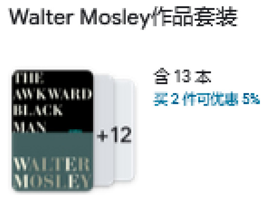 The key independent variables here include the bundle size of the bundling-by-yourself (BBY) option offered by Google Play and the dummy variable of recommendations. Different from traditional pure bundling, BBY enables consumers to choose their own bundles. Figure 3 below presents an example of the BBY option. When consumers search for the e-book “The Awkward Black Man”, Google Play will provide the bundle option of 13 books from the same author, Walter Mosley. Consumers can choose their own bundle from these books. If they buy two books from this bundle pool, they can receive a 5% discount. To test the hypothesized convex (U-shaped) relationship, please note that the factor of bundle size (in log transformation) enters the model linearly together with a square term.