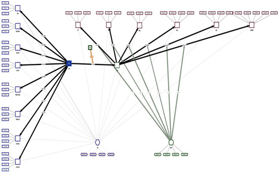 156]. For the current model, examples of substantial effects include CA → EU with a total effect of 1.273, highlighting the significant cumulative influence of CA on EU at both direct and indirect levels.