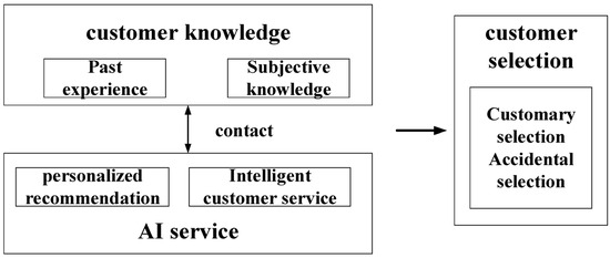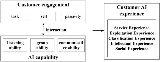The customer AI experience stems from the customer experience, which refers to the multidimensional response of customers to a company’s services, encompassing five dimensions: cognitive, emotional, sensory, behavioral, and relational [13]. Research on customer experience phenomena can be broadly classified into two categories: the customer experience as a response to the consumption process and the customer experience as a response to managerial stimuli [14]. One approach describes the interaction between customers and companies as a journey of customer experience touchpoints, while the other distinguishes between different types of customer reactions [15]. With the integration of AI technology, companies can enhance the customer experience by gaining a deeper understanding of customers and predicting their needs, analyzing customer emotions and feedback with scale, precision, and speed that are beyond human capabilities [16]. The intelligent customer experience, therefore, refers to a customer experience mediated by technology, specifically manifested in customers’ perception of AI’s advantages and the extent of interaction [17].