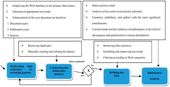 A bibliometric analysis was conducted to derive valuable insights from the data. Various metrics and statistical methods were utilized, including the h-index, total citations, and temporal distribution of publications. A keyword analysis was employed to study the keyword frequency, extract relevant data on advergames and gamification in tourist destinations, identify methodological approaches, and highlight potential avenues for future research.