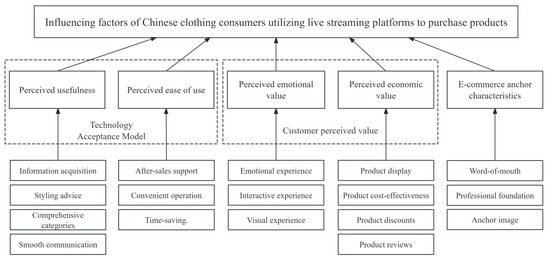 Lu and Chen highlighted that, compared to other countries, China’s live streaming e-commerce is characterized by large-scale operations, explosive growth, and a high degree of specialization. In contrast, live streaming e-commerce in other countries remains in its early developmental stages, marked by limited governmental policy support and lower levels of specialization [55]. In China, the integration of e-commerce into live streaming has proven to be an exceptionally successful practice. In the Chinese live streaming e-commerce sector, Douyin has unquestionably emerged as a market leader. Douyin’s official data demonstrate that in 2023, the platform enabled the sale of 30 billion items. During the Douyin 618 Good Thing Festival, the Douyin Mall saw a 227% increase in gross merchandise value (GMV), contributing to an overall sales growth of 66% [56]. Given Douyin’s commercial success and influence, several scholars have conducted studies on its consumer base. However, the existing research predominantly focuses on aspects such as user experience [57], trust and loyalty [58], personalization [59], and customer satisfaction [60]. Overall, there is a noticeable gap in the granular examination of specific consumer demand elements, as well as a lack of segmented studies on particular product categories within live streaming e-commerce. For instance, clothing is a dominant category on Douyin [28], but research on consumer behavior specifically related to clothing products on this platform is notably scarce. Most studies have been limited to analyzing short video marketing strategies from the perspective of clothing brands [60], or to peripheral topics such as fashion opinion leaders and short video marketing [61].