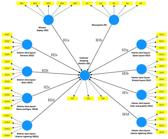 As a tool of visual merchandising, WD serves several essential roles, such as creating a strong visual impact, facilitating communication with customers, enhancing brand image, and driving sales [50]. Based on these considerations, we propose the following hypothesis: