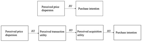 The mental account theory divides the consumer’s selection process into the initial “editing” stage and subsequent “evaluation” stage [45]. In the first stage, consumers edit their “prospects” for future access to services or usage of products through transactional behavior. When consumers perceive significant fluctuations in the prices of the same hotels and room types across OTA platforms during the transaction process, they compare their internal “reference prices” based on the market’s high- and low-price information and expected transaction prices. The additional discounts obtained through this “bargaining” can be seen as a “signal” [6]. Consumers analyze the discount signals received and combine them with a more straightforward expression based on their perception, which is the psychological pleasure achieved by attaining the discount. In the second stage, consumers evaluate the encoded prospects and select the most valuable prospect based on decision weights in the psychological account. Transaction utility is perceived as a “stimulus” relative to acquisition utility. In mental accounts, people do not aim to maximize economic utility in rational cognition but instead maximize psychological utility in perception. The PTU obtained by avoiding unfavorable transactions in price dispersion and PAU obtained through high-price–performance bookings sequentially form consumers’ final perceived utility. The two cannot be replaced but can have a sequential impact; good transactions between consumers and providers can arouse consumers’ pleasure and provide customers with unforgettable memories. According to the consumer memory theory, the pleasure experienced and stored in consumers’ memories through transaction experiences stimulates future behavioral expectations, making consumers feel that obtaining utility is subjectively more valuable [46,59]. Subsequently, consumers may evaluate the price performance of this transaction based on potential transaction prices compared to the reference quality, and the price–quality ratio may represent the PAU. The psychological satisfaction that PTU brings to consumers will benefit this process, making them feel that transactions are more price-effective and ultimately increase their PI. Accordingly, we propose the following hypothesis: