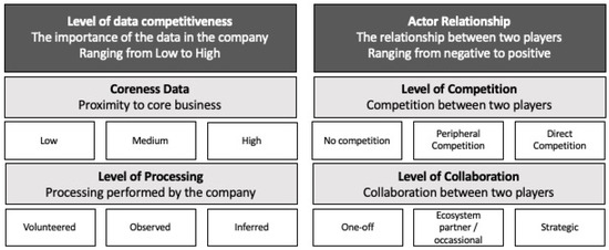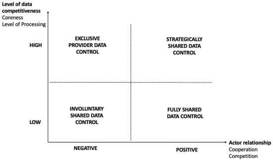 The first dimension, the level of data competitiveness, determines which data are considered either shareable or non-shareable. If considered of high data competitiveness, they will be protected [44]. Data providers will not be inclined to grant data access control to data that are business-sensitive, or the data access control will be conditional [3,42,67]. We triangulated that the level of data competitiveness depends on the coreness of the data, i.e., proximity of the data to the core business [11], and the level of processing [12].