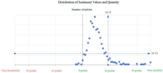 Sentiment analysis of captured user reviews was conducted using Octopus Collector, with sentiment scores ranging from −50 to 50. The analysis showed 84% positive, 11% neutral, and 5% negative. By looking at the sentiment analysis graph, it can be seen that the sentiment scores range from −50 to 50. A score closer to 50 indicates a higher level of user satisfaction and vice versa. According to Figure 2, the review sentiment scores are mainly centered on 0 and above, which indicates that most of the users are satisfied with the Aksu apples.