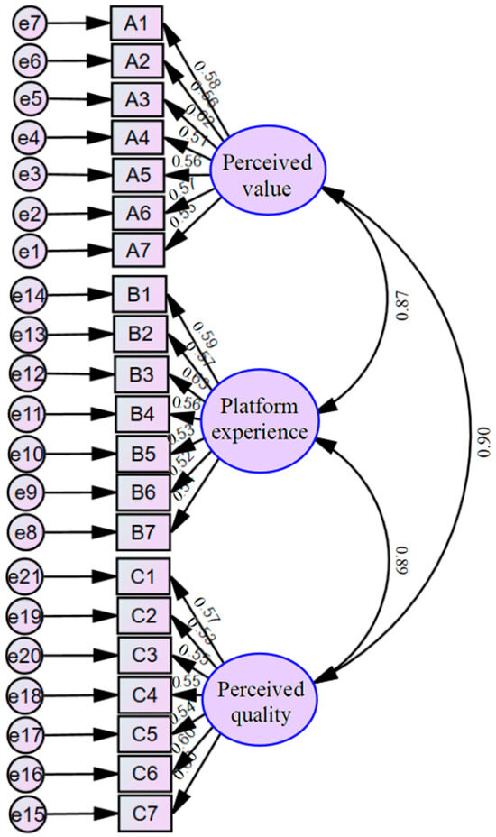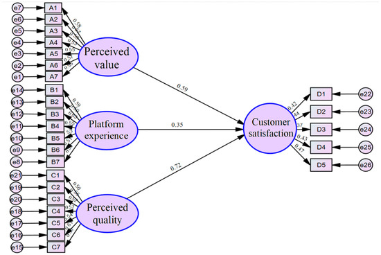 By looking at the rotated component matrix, the model was reclassified into four categories: perceived value relates to customer feelings; platform experience relates to customer satisfaction with the platform; perceived quality relates to the customer’s experience of the products and services upon arrival; and customer satisfaction relates to the maintenance of the relationship between the platform and the customer. The reclassified model is clearer and more accurate, which helps to further understand and optimize the research results.