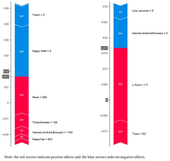 In addition to SNSs, the use of gallery applications, web browsers, such as Google Chrome (Rank 8; MAS = 0.044601 when using XGBoost), and search portal applications, such as Naver (Rank 7; MAS = 0.056387 when using XGBoost), is associated with an information exploration process that precedes mobile payments. This pattern reflects users’ tendency to search for product information or compare options before completing a transaction, which is consistent with prior findings by Huang et al. [22], who noted that browsing behaviors predict purchase outcomes. Table 5 presents the predictive strength of financial management applications such as Toss (Rank 9; MAS = 0.049509 when using XGBoost) and loyalty-based membership applications such as OK Cashbag (Rank 10; MAS = 0.049188 when using XGBoost). Both types of applications rank among the top ten factors affecting mobile payment behavior. These results indicate that consumers often check account balances or manage rewards and loyalty points before making mobile payments, aligning with the behavioral patterns reported by Zeng et al. [23]. Thus, increased usage time of financial management and loyalty-based membership applications is associated with a higher likelihood of engaging in mobile payment behavior.