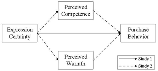 In practice, expression certainty is a language strategy frequently used by streamers, referring to the way individuals convey their high confidence and certainty about the information through language [13,14]. Most live-stream streamers hope to boost viewers’ confidence through such a tone, aiming to influence consumers’ purchase decisions [15]. Moreover, the majority of influencers and companies believe that using certainty expressions in their language helps them appear more credible. As a result, they frequently adopt certainty-based language strategies in livestreaming [13]. However, expression certainty does not always yield positive results [16]. On the one hand, in the field of consumer behavior, expression certainty (as opposed to uncertainty) is expected to convey the communicator’s confidence and professionalism, thereby attracting consumers’ interest [17]. On the other hand, research by Moy et al. (2024) in the context of crowdfunding found an inverted U-shaped relationship between expression certainty and crowdfunding success [18]. This duality makes the effectiveness of expression certainty in practice uncertain. Despite its widespread use in live-stream practices, existing research seldom explores its specific impact on consumer purchase behavior. In particular, in the context of live-stream e-commerce, it remains unclear how expression certainty influences consumer purchase decisions and its underlying mechanisms.
