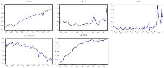 - Digital banking has a positive and significant coefficient, supporting the view that financial digitalization facilitates economic growth. A 1% increase in the quarterly growth of digital banking usage raises the quarterly growth rate of the GDP by 0.05 percentage points. The short-term impact of interest rates is significant but negative, reflecting the contractionary impact of monetary tightening. Exchange rate (appreciation of the domestic currency) has a significant and positive effect on economic growth as stronger currency cheapens imports, reduces costs for businesses and consumers, and lowers the external debt burden. Out of two exogenous factors, the change in federal funds rate is not significant, possibly due to the presence of exchange rates in the model that captures the influence of global financial conditions. The growth rate of the Euro area, on the other hand, has a significant and positive coefficient, showing the importance of global demand conditions. Finally, the dummy variable, , is significant and negative, reflecting the adverse effect of the failed coup attempt that is not captured by regular variables, whereas is negative but not significant, which suggests that its impact on GDP is already captured by other regressors. The model explains over 81% of the variation in .