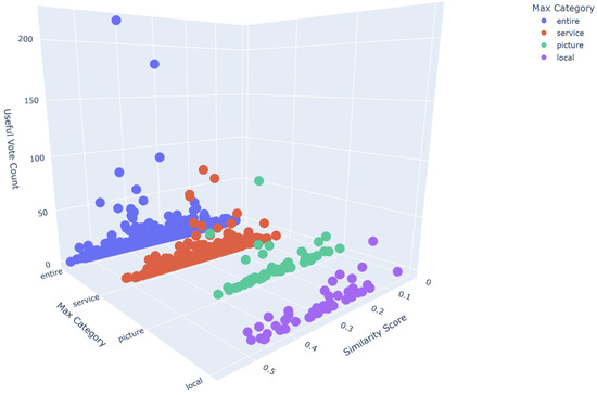 The volume of likes of a comment is used as a helpfulness measurement indicator. The image content variable is processed, and the product attribute that appears most frequently in a single comment image is defined as the maximum product attribute. Combined with the image–text consistency and comment helpfulness variables, the visualization result is shown in Figure 6. In summary, there is a complex causal relationship between the information at all levels of online reviews and the helpfulness of reviews, which needs further exploration.