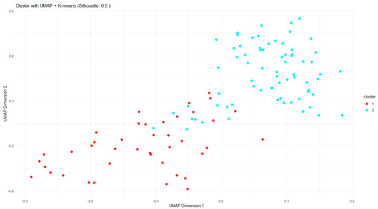 UMAP effectively maintains the original data structure, enabling a meaningful interpretation of clustered thematic patterns. While traditional methods, such as Principal Component Analysis (PCA), rely on linear transformations and assume that data structures can be effectively represented in a linear, orthogonal subspace [43], textual embeddings typically embody complex, non-linear semantic relationships [44]). PCA’s linear assumptions may inadequately capture these intricate data patterns, resulting in potential information loss and oversimplification of the data’s semantic structure. Therefore, Uniform Manifold Approximation and Projection (UMAP) was preferred due to its ability to model the non-linear and high-dimensional structure of textual embeddings more effectively. UMAP achieves dimensionality reduction by constructing a high-dimensional graph representation of the data and optimizing it into a lower dimensional manifold that preserves both local and global data structures, thus offering improved semantic interpretability compared to PCA [44]. Consequently, employing UMAP in this study allowed for a richer and more nuanced representation of sentence embeddings, enhancing the clustering accuracy and interpretability of the resulting thematic clusters.