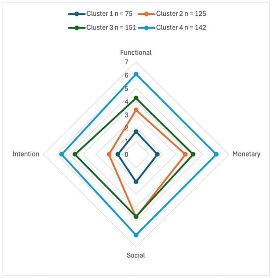 | Scenario | Functional (M ± SD) | Monetary (M ± SD) | Social (M ± SD) | Intention (M ± SD) |