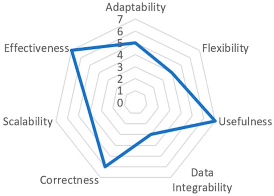 During this journey with the business owner, we developed a short questionnaire to understand their perspective on our results from a business standpoint. We asked our stakeholders, including directors and managers from both the marketing department and the information technology department, to complete the questionnaire. Table 4 presents a conceptualization of the questionnaire in terms of seven aspects: Adaptability, Flexibility, Usefulness, Data Integrability, Correctness, Scalability, and Effectiveness. Figure 5 presents these seven aspects and how far the business cares for and attends to each aspect in a spider-web diagram. In the results section, we provide a subjective evaluation of the consumer shopping experience based on the questionnaire results, while Table 4 summarizes an objective evaluation from a business perspective.