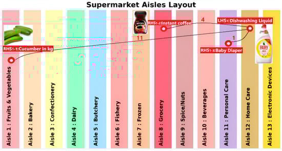 - The resulting rules were filtered in two ways: price-based and distance-based. Price-based filtering prioritizes association rules that involve products with the highest price difference between the left-hand side (LHS) and right-hand side (RHS). These ARs feature a cheaper product in the LHS, such as ‘cat food’, leading to a higher-value product in the RHS, such as a ‘microwave oven’, while distance-based filtering prioritizes association rules based on the maximum physical distance between the left-hand side (LHS) and the right-hand side (RHS). These ARs feature the farthest product in the LHS, such as ‘Shampoo,’ leading to a cross-product in the RHS, such as ‘Milk’.