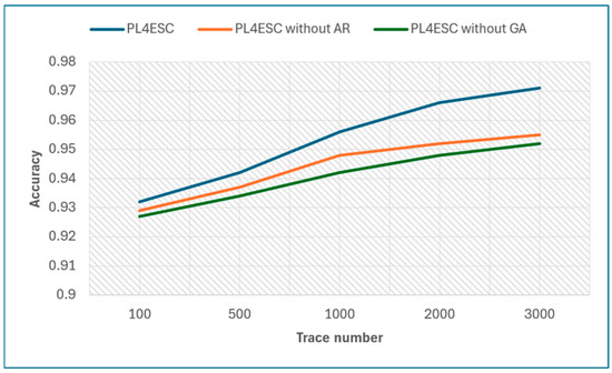 Accuracy of PL4ESC, PL4ESC without GA, and PL4ESC without AR.
