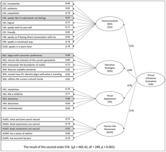 | Dimensions | Items “This Virtual Influencer (Is) or (‘s Content)”… | Factor Loading | |||