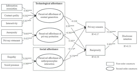 Path coefficients. (Note: *, p < 0.05; ***, p < 0.001).