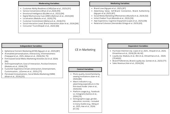 Overall, our review revealed that 83 different theories were adopted by the authors. This set of theories reflects a diverse methodological approach, combining perspectives from psychology, sociology, marketing, and information systems. The use of theories such as Customer Engagement Theory, the S–O–R model, UGT, and TAM/UTAUT indicates an interdisciplinary research framework that enables a comprehensive analysis of AI’s role in CE and SMM.