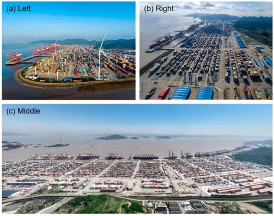 Ningbo-Zhoushan port: (a) left: northwestward; (b) middle; and (c) right: southeastward.