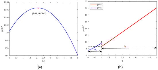 From the second derivative of the profit function of the platform, for all cases. The profit function is concave with respect to , and the maximum market share can be obtained. Let , following the same process as in the proof of Proposition 1, so it is not repeated.