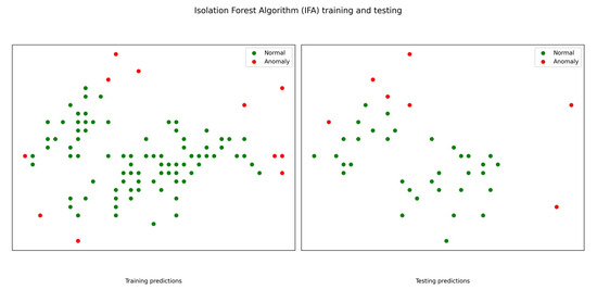 Figure 7 shows the isolation forest algorithm (IFA). The isolation forest algorithm (IFA) showcases its capability in anomaly detection by effectively separating normal data points from anomalous ones across training and test datasets.