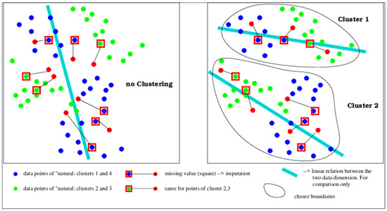 However, it is conceivable that AI may help in finding surrogates for the variables containing missing values by producing proxies of these variables from combining other (seemingly unrelated) variables present in the vast databases, which are implicitly incorporated in, say, Large Language Models. Furthermore, AI-related computational environments may ease the heavy load of training a very large number of data models on subsets of variables, for instance, to offer a stable response if multiple missing values are encountered at the prediction time. The usefulness of these approaches depends on the nature and (hidden) redundancy of the available data, and, for the time being, human judgment is still required. A similar argument applies concerning a possible useful cluster structure that cannot be accessed from the data, even when using different linkage methods (via hierarchical clustering).