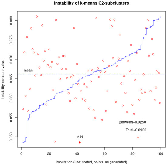 Step 2—Many economic data (including ours) contain up to 30% of missing value entries (NAs). The outcome of statistical analyses using such data is biased or skewed if disregarding them or replacing NAs with “naive” numeric values like means or zeros. Hence, generating a sufficiently large number of imputations, that is, proposing matrices with different missing value replacements, is called for. There are some refined approaches available, which generate imputations by taking the follow-up modeling intention into account. As in our case, if the follow-up modeling happens to be clustering, the generated set of imputations would enable preferably stable clusters. In qualitative terms, this can be thought of as favoring such imputations which do not radically change cluster compositions by making relatively small changes in the data. Such characteristics are enforced by procedures which fall under the label of Bayesian probabilistic programming (a prominent example being STAN—Substance Flow Analysis v2.37.0-rc3. Substance Flow Analysis—STAN is a very powerful system for Bayesian probabilistic programming used for data-intensive modeling. It may be used as a stand-alone application, but it more often serves as a (hidden) back-end in many software tools or languages popular with researchers from many scientific domains, as are, e.g., Python, Matlab, R, Stata, etc.), which is part of the modern AI/ML toolbox.
