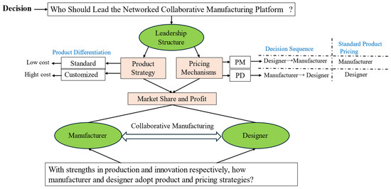Second, a growing body of platform literature (e.g., Refs. [26,27,28]) has increasingly explored governance and commission mechanisms. However, these studies are typically rooted in retail-oriented platforms and overlook the collaboration of design and manufacturing in industrial contexts. Our research contributes by analyzing how leadership roles in NCMPs shape pricing decisions, participation incentives, and supply-chain profit allocation.