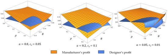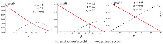 In the PD model, the profit shares of both parties depend nonlinearly on the commission rate. Specifically, the designer’s profit follows an inverted U-shaped curve with ρ, while the manufacturer’s profit decreases monotonically. This difference reflects the structural tension between pricing power and coordination cost, which is largely absent in consumer-focused platform models (e.g., Abhishek et al. [25]; Zhang et al. [9]). Our results also resonate with Huang and Chen [29], who find that greater platform control may inhibit leadership incentives due to operational burden—but we further clarify the specificity of our study by determining when and why this reversal occurs in a dual-product context.