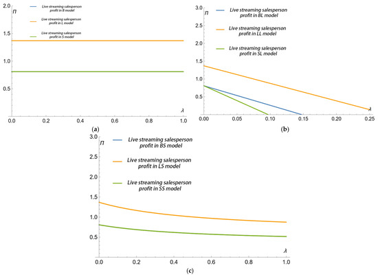 represents the fairness attention coefficient of live streamers who promote products. The equation is used to measure the difference between the profits of live streamers and the manufacturer (Li et al., 2020 [41]). When the difference is positive, the utility of retailers will be compromised, and when the difference is negative, the utility will increase. This means that live streaming salespeople will pay more attention to the relative fairness of their game with the manufacturer, comparing the manufacturer’s profits with their actual profits. However, in this supply chain, due to the dominant position of manufacturers, the profits of live streamers are limited by manufacturers, so the profits of manufacturers are generally higher than those of live streamers.