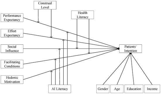 The development of generative AI has disrupted various fields, and the field of online healthcare is no exception. However, there is a lack of research on patients’ intention to adopt generative AI on online healthcare platforms. Therefore, the aim of this study is to investigate the factors influencing patients’ intention to adopt generative AI. Employing a questionnaire-based survey, we explore the factors influencing patients’ intention to adopt generative AI through the UTAUT2 model, considering the moderating effects of construal level, health literacy, and AI literacy. We find that performance expectancy, social influence, and facilitating conditions are positively associated with patients’ intention. Surprisingly, effort expectancy and hedonic motivation do not have a significant impact on patients’ intention. Construal level positively moderates the relationship between performance expectancy and patients’ intention; health literacy negatively moderates the relationship between social influence and patients’ intention. AI literacy positively moderates the relationship between effort expectancy and patients’ intention but negatively moderates the relationship between social influence and patients’ intention. This study enriches UTAUT2 theory and provides practical insights for the development and promotion of generative AI on online healthcare platforms. Full article