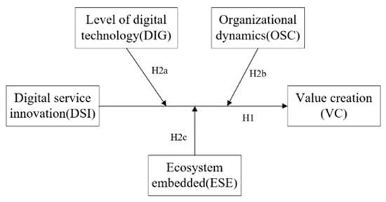 Based on the above hypotheses, this study proposes a theoretical model, as shown in Figure 1, to investigate the impact of digital service innovation on value creation in manufacturing firms.