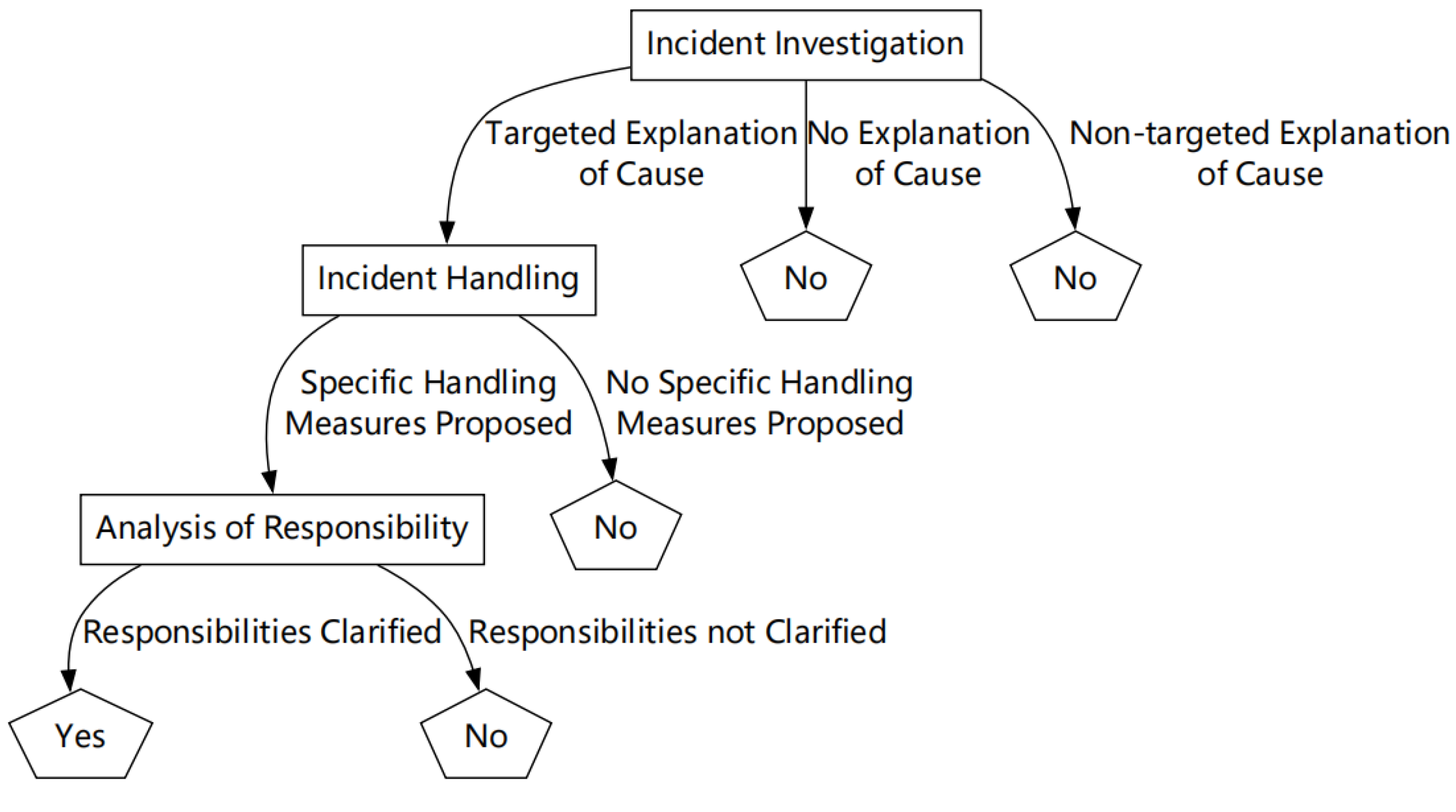 38]. This study adopts three variables as key indicators for measuring information quality, including incident investigation, incident handling, and analysis of responsibility. The value criteria are listed in