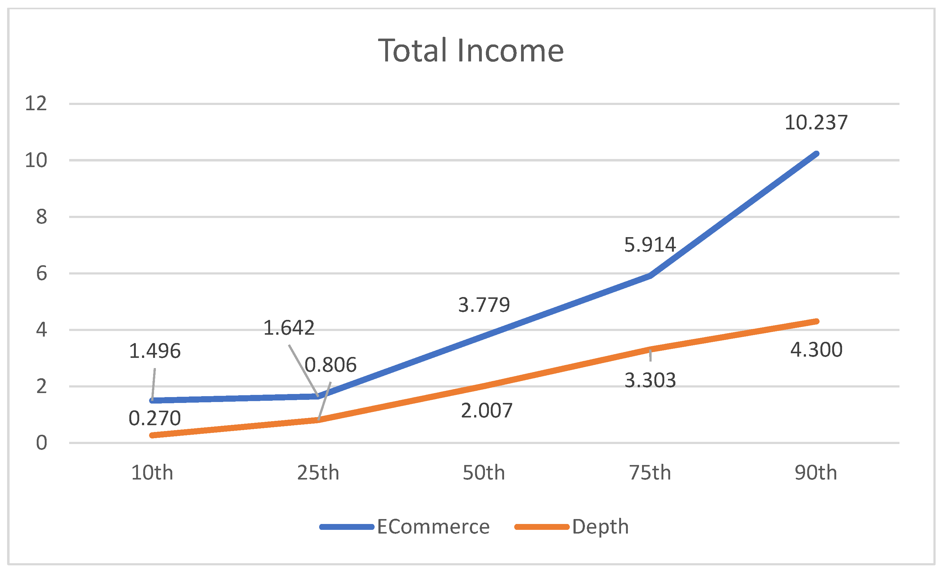 In summary, farmers’ multi-dimensional engagement in e-commerce—through digital preparedness, production and operational practices, product marketing performance, and digital financial integration—has played a pivotal role in improving productivity, broadening income sources, lowering operational costs, and alleviating financing barriers. Each of these dimensions constitutes a distinct channel of value creation. The overall income effect of e-commerce-led digital-chain embedding is an aggregate of these dimensional effects, which may operate independently or with varying intensity across different farmer groups. This composite process of digital empowerment has systematically enhanced farmers’ resource allocation capabilities and market competitiveness under the digital economy. It not only strengthens farmer operational performance but also provides a robust foundation for sustainable income growth and long-term development.