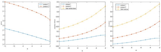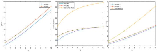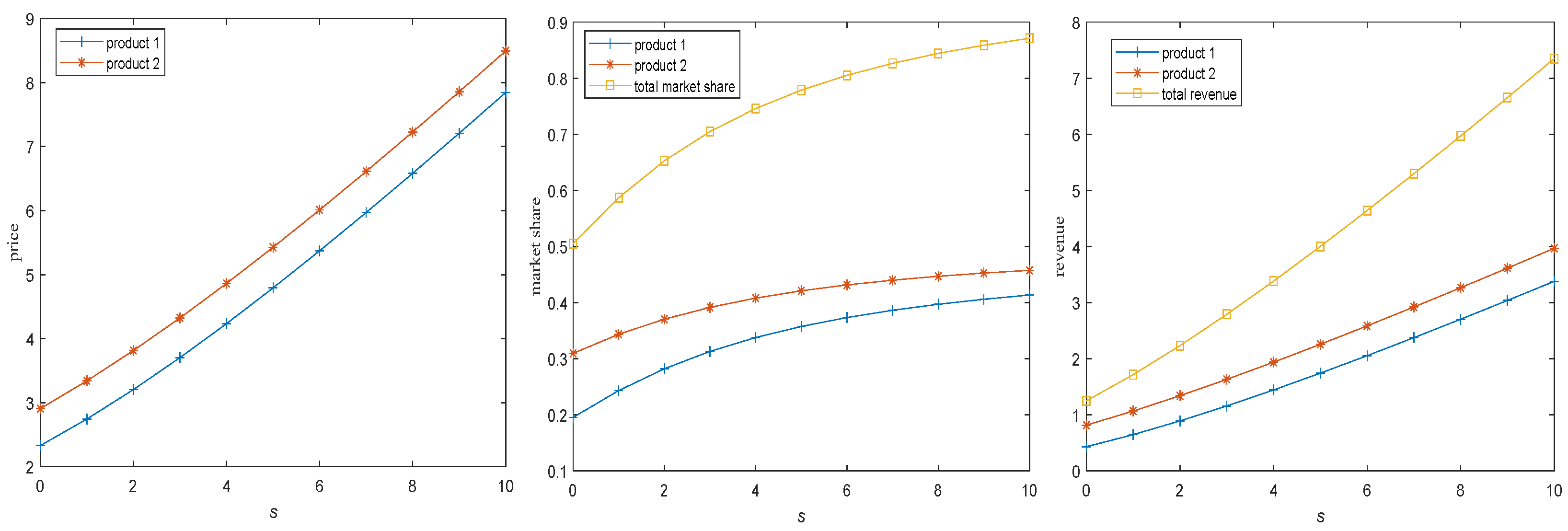From Corollary 4, it can be observed that as consumer preferences for services increase, product sales gradually increase. This indicates that an increase in consumer preferences for services stimulates new market demand, prompting firms to provide services and continuously improve service quality. Consequently, firms gain advantages in product and service sales and enhance the potential for profit growth. To effectively address this trend, firms can take measures to enhance consumer preferences for services, such as offering experiential services and increasing consumer awareness and emotional trust in services.