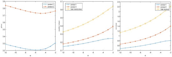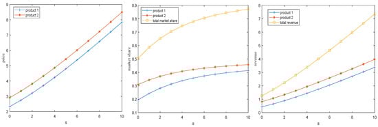 Corollary 3 confirms that an increase in both product quality and service quality leads to an increase in optimal market share, optimal price, and profit. This suggests that an increase in product quality and service level attracts more consumers to the market, in which case firms can increase their prices accordingly to realize an increase in profits. Furthermore, the optimal pricing, market share, and profitability exhibit greater sensitivity to variations in product quality than to changes in service quality. High product quality not only meets customer expectations and reduces the burden of after-sales services but also often generates positive word-of-mouth and brand loyalty, attracting more potential customers. After establishing a solid foundation in product quality, enhancing service quality can further improve customer experience and satisfaction. Premium services not only compensate for any potential product deficiencies but also provide personalized, efficient support and solutions to customers, thereby strengthening the competitive advantage of the firm in the market. Therefore, under similar market conditions, firms should prioritize improving product quality while also considering service quality. Only when consumers’ preference for services is at its maximum should firms give equal weight to the quality of services and product quality.