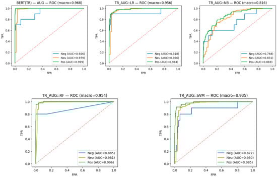 ROC Curves of ML and BERT Models (Turkish, Augmented).
