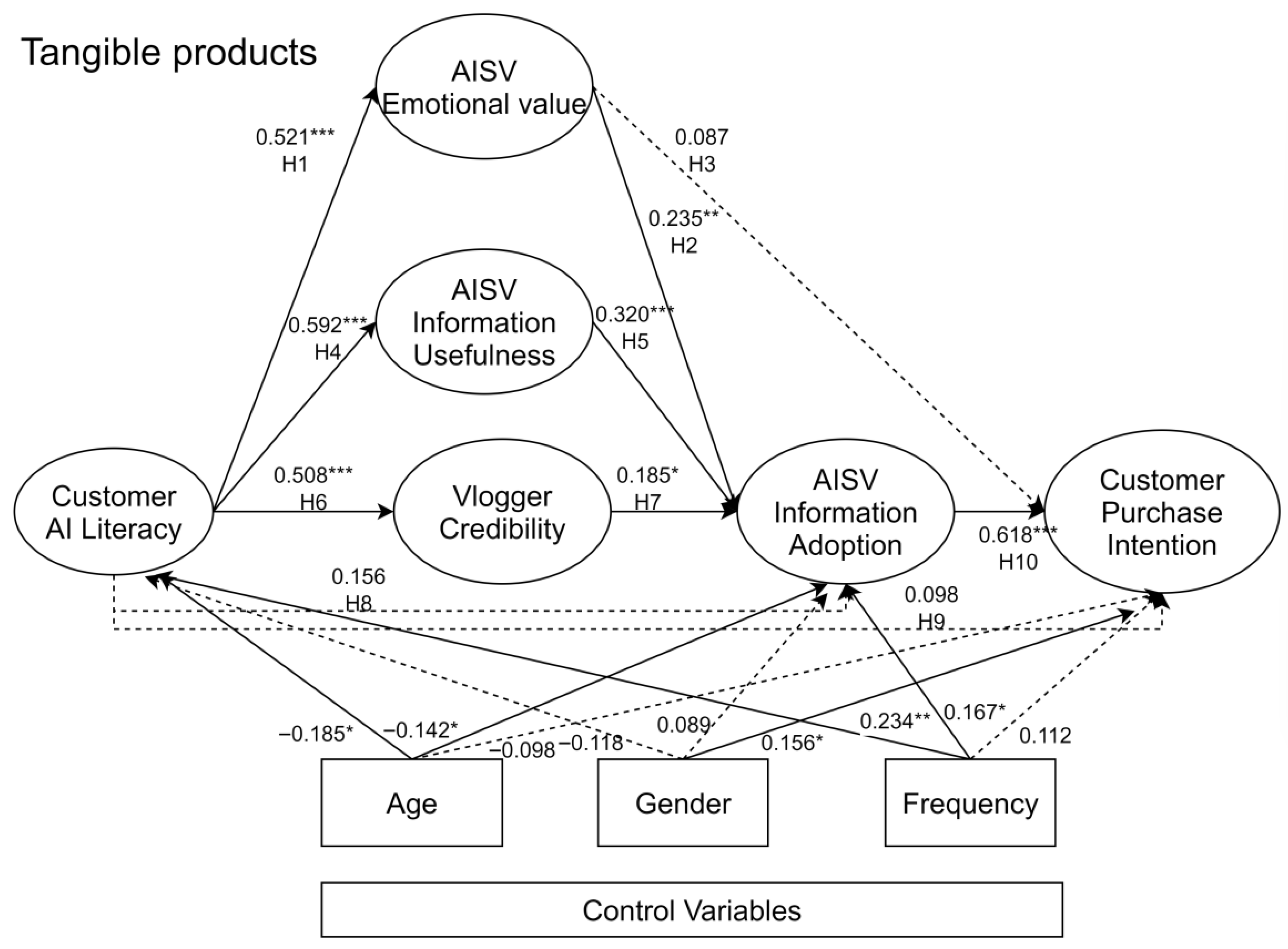 | Consumer AI literacy | The degree to which consumers possess the knowledge, skills, and critical understanding necessary to recognize, evaluate, and engage with AIGC, particularly AISVs. | [20,23] |