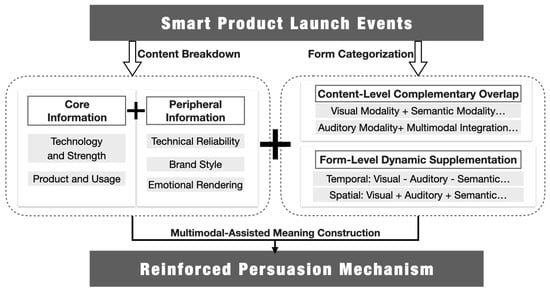 Product launch events serve as a crucial means of marketing and communication for technology brands. With the empowerment of multimodal technologies, the construction of meaning and the pathways of persuasion in these events have been reshaped. Drawing on grounded theory, this study systematically reviews and analyzes 258 smart product launch events organized by 20 leading technology brands. The findings reveal that product launch events consist of two major categories of content—namely, core information and peripheral information—which together form a reinforced persuasion mechanism, resonating with the additivity effects proposed in the Heuristic Systematic Model (HSM). Furthermore, the abundant multimodal cues embedded in these events contribute to the reinforcement mechanism through overlapping complementarity and dynamic supplementation. Finally, this study discusses the theoretical significance of the multimodality-assisted reinforced persuasion mechanism in relation to dual-process models and its appropriateness in contemporary communication contexts. By providing an in-depth investigation of smart product launch events as a novel form of content dissemination, the study conceptualizes a persuasion mechanism suitable for complex communication environments and offers practical guidance for industry marketing practice.