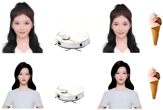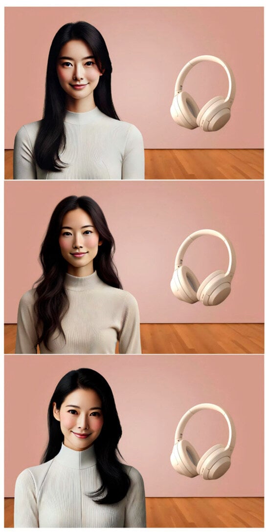 The images for the VIs and HIs were carefully selected to be comparable on key demographic attributes (gender: female; ethnicity: Asian). The VI images were generated using a commercial AI avatar website, while comparable HI images were sourced from publicly available, royalty-free image databases. To minimize potential confounds unrelated to the influencer’s virtual versus human nature, a rigorous standardization process was applied. All images were digitally edited to ensure a consistent neutral background, similar clothing color palette (e.g., white shirt), and comparable hair style and color. This process was designed to isolate the conceptual manipulation of influencer type (see Figure 1). The full set of visual stimuli is available in the Supplementary Materials (Figure S1).