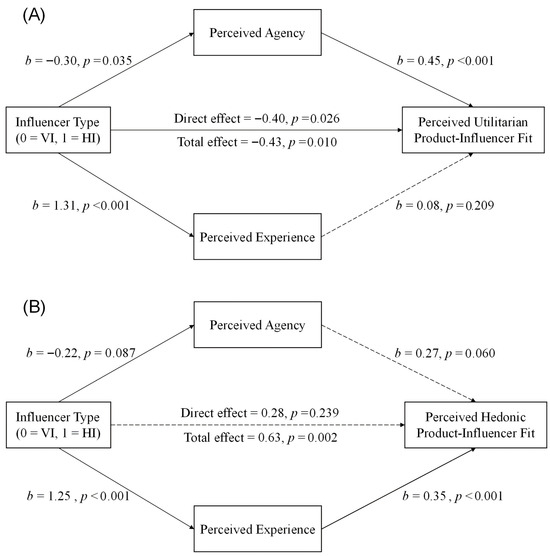 We argue that consumers, largely unconsciously, rely on these two dimensions to assess influencer-product fit. The key lies in the systematic difference in mind perception between HIs and VIs. AI-based technologies are generally perceived as high in agency—capable of logic, planning, and efficient processing [46,47]—but low in experience, lacking genuine emotional depth [48,49].